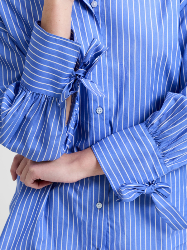 Cotton Striped Bow Shirt Azure Blue