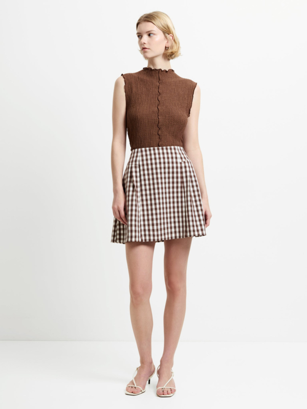 Lexi Suiting Mini Skirt Espresso Brown Check