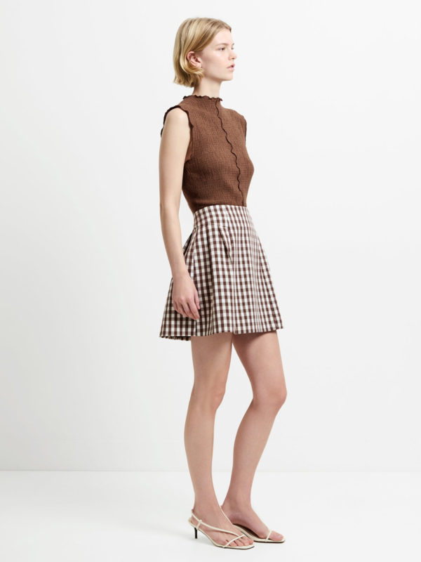 Lexi Suiting Mini Skirt Espresso Brown Check